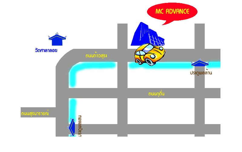 การเดินทางมาติดต่อเรื่องตู้สาขาโทรศัพท์ เอ็ม.ซี.แอดวานซ์ เทเลคอม เซอร์วิส นครราชสีมา ตั้งอยู่ริมถนนท้าวสุระ เลยโค้งวัดศาลาลอยมาประมาณ 200 เมตร มีป้าย PANASONIC ใหญ่ๆ อยู่บนตึก ตรงข้ามเป็นคูน้ำรอบเมือง